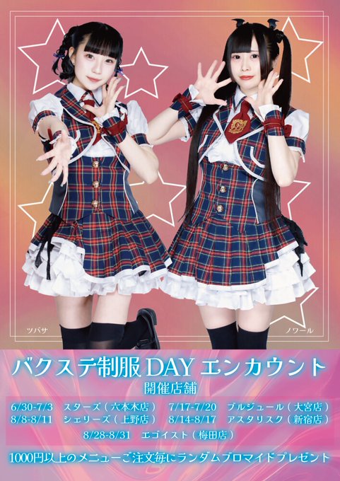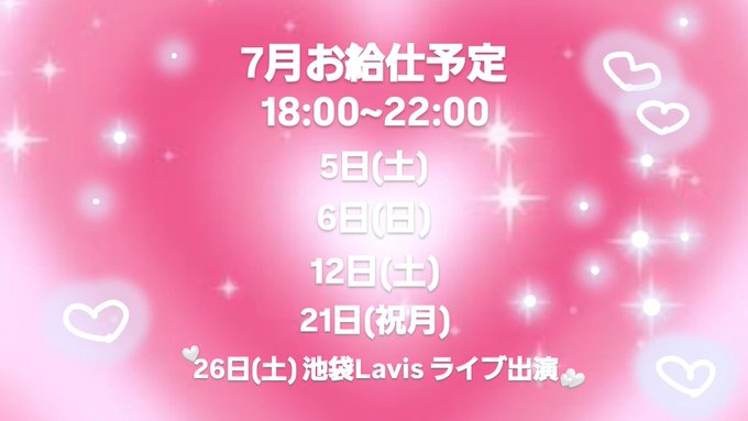 王立アフィリア・ブルジュール(大宮)@blujour_afilia·本日のブルジュールは18時から23時まで営業します バクステ衣装DAY最終日♡ シアン ミユウ イチノ スイ~2130 7/21~24夏の私服EC 7/25ポメぷちBD 7/26CLUBネオン 7/28.29なにわの日 7/30.31ネオン監修激辛2DAY 8/9ミユウ2周年&BD 8/19~23浴衣13575