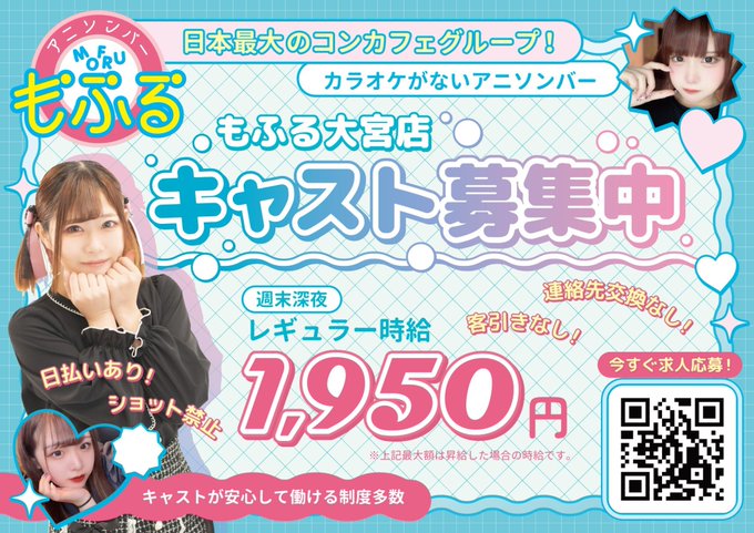 アニソンバー もふる 大宮店 ✨コンカフェ最大手✨@mofruomiya·【新人さん求人募集🌟】 アニソン🎤アイドル✨サブカル🎀が好きな女の子が楽しく働けるお店 詳細はURLをみてね✨ http://mofru.com/bosyu/ ショットなし、私服出勤、アニソンを楽しみながらのトーク空間! 大宮駅から5分でアクセス良好❤️ 私達と一緒に働きませんか? #もふる #大宮 #コンカフェ34740
