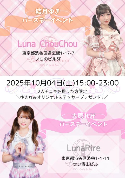 高橋あやか🐙🍥さんがリポスト結月ゆき 次回お給仕10/3-10/9🎀@Ynki910·\🎂10/4(土)バースデー詳細🎂/ この日は会いにきてくれると 嬉しいです🥹 ご飯も頑張って作るので、食べてね♡ れみちゃんとのハシゴ特典もあります✨ 特典バースデー限定だから ぜひ、ゲットしてほしいな💭💕大原れみ49261,287