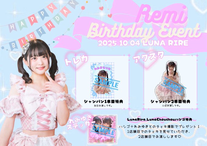 七瀬いづみ*9/27生誕イベさんがリポストLuna Rire(Luna Amour Group)@_lunarire_·【9/27(土)】 🎀15:00〜23:00🎀 \⭐︎🎂いづみバースデー🎂⭐︎/ ❤️いづみ 🌙らいむ 🌙らら 🌙じゅり 🌙みさき \🎁ご新規様おばんざいプレゼント💕/ ✨遠隔✨ → http://lunaamour.base.shop 📍渋谷1-1-11サン青山ビル2階 #渋谷コンカフェ #ルナアムール #ルナリル七瀬いづみ*9/27生誕イベさんと他4人914981
