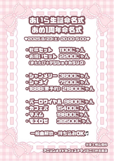 かなめ@ynmn32_kaname·🎀8/23(土)20:00~5:00🎀 あめさんとあいらさんのイベントが開催されます! 生誕と1周年というおめでたい瞬間をお見逃しなく‼️4595