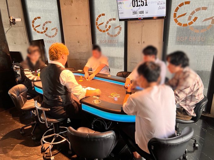 POKER BAR『EGP EBISU』@EGP_EBISU·⚜️EGP EBISU店内状況⚜️ 【BIG5キャンペーン!】 EGP Daily Tournament 只今、Level 2 3名様でスタート💕 レイトレジストは20:30です🔥🔥 👇🏻トーナメント詳細👇🏻 https://pokerguild.jp/tourneys/323851 #EGPOKER2359