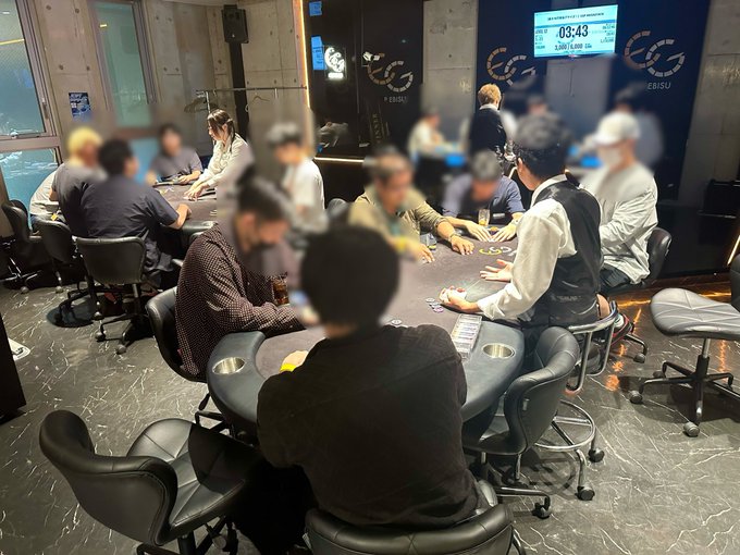 POKER BAR『EGP EBISU』@EGP_EBISU·⚜️ EGP EBISU 店内状況 ⚜️ 【EGP フリーロール】 Level1 5名様でスタート‼️ 総額18万への架け橋へ🌈 レイトレジストは12:30です🥹🥺🥺 ⬇️トーナメント詳細⬇️ https://pokerguild.jp/tourneys/323917 皆様のご来店お待ちしております🔈🔉🔊 #EGPOKER3294