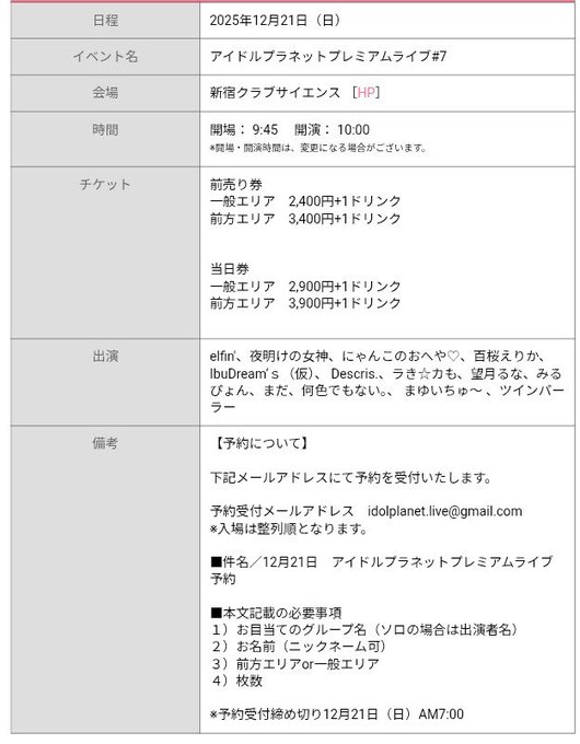 渋谷・中目黒・五反田 Luna Amour心羽夢(こはむ)ぴょん🐹🐰#ルナアムール@pyon_doll0105·12月11日ぴょんぴょんの年納めライブはみるぴょんです🍼🐰 衣装ちょーーーかわちだから 期待しててねっ🩵🩷わくわく 行くよ報告まってまちゅ🐹引用🍼みるぴょん🐰12/21デビュー@クラブサイエンス@mirupyon_idol·12月11日みるぴょんお披露目🎂 『アイドルプラネットプレミアムライブ#7』 🗓2025年12月21日(日) 📍新宿クラブサイエンス ライブ🎤10:15~ 特典会💞10:45~ 🎫前方¥3,400/一般¥2,400 💌 idolplanet.live@gmail.com 🍬全曲撮影可能🍬 動画も写真もたくさん撮ってね🎀 #みるぴょん で拡散お願いします🩵149486