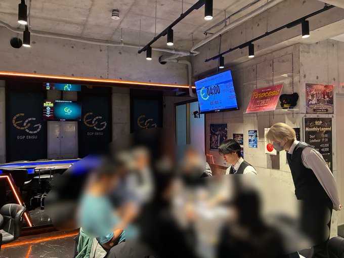 渋谷・中目黒・五反田 ポーカーバー EGP EBISUPOKER BAR『EGP EBISU』@EGP_EBISU·⚜️EGP EBISU店内状況⚜️ 只今、7名様で進行中です! 【平日毎日開催!1000円で参加できる!】 🔱1卓限定JOPTサテライト🔱 レイトレジストは17:30までです🔥🔥 皆様のご来店お待ちしてます🔈🔉🔊 #EGPOKER1139