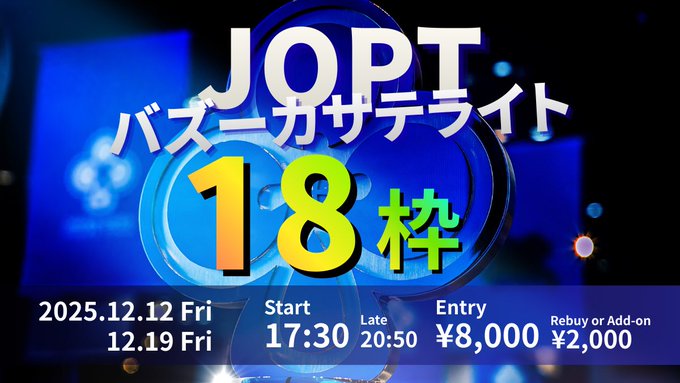 渋谷・中目黒・五反田 ポーカーバー EGP EBISUPOKER BAR『EGP EBISU』@EGP_EBISU·本日12/12(金)はJOPT祭り❣️ 通常の1卓限定サテライトからのバズーカサテライトも開催⁉️ 🎫JOPTバズーカサテライト18枠🎫 12月12日(金)&12月19日(金) ⚔️スタートタイム 17:30 ⚔️レイトレジスト 20:50 エントリー : 8,000円 リエントリー : 8,000円 リバイアドオン:2,000円 スタートスタックさらに表示22604
