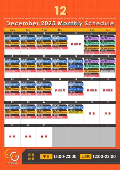 渋谷・中目黒・五反田 ポーカーバー EGP EBISUPOKER BAR『EGP EBISU』@EGP_EBISU·本日12月12日(金) ⚜️ EGP EBISU ⚜️ 15時オープンです‼️ ▶️【16:00】1卓限定JOPTサテライト 16時10分までにエントリー頂いた方先着3名様限定🤗 アーリーバードでアドオン無料‼️ https://pokerguild.jp/tourneys/334194 ▶️【17:30】JOPTバズーカサテライト18枠 本日12/12(金)はJOPT祭り❣️さらに表示0:0611245