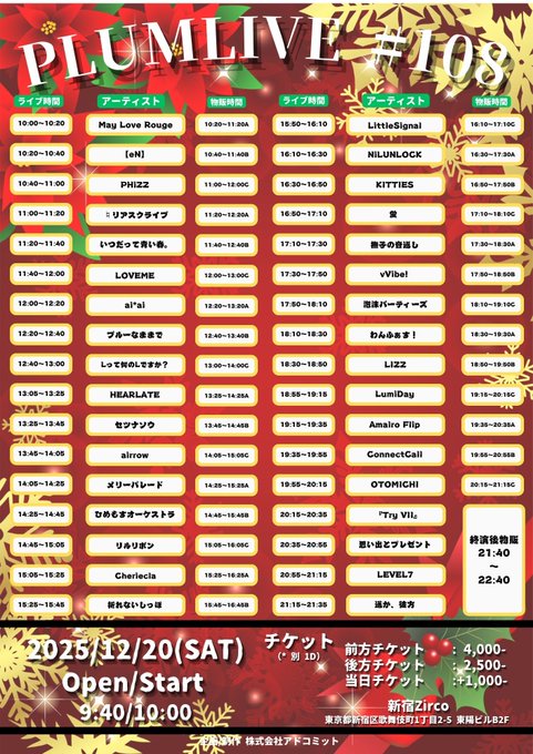 渋谷・中目黒・五反田 Luna Amour黒宮しいか☁️【LOVEME】さんがリポスト【アイドル道場】@adcommit·3時間タイムテーブル公開‼️🎄引用【アイドル道場】@adcommit·11月23日PLUMLIVE #108 🎄開催決定🎄 詳細はこちら⬇️ https://t.livepocket.jp/e/psr-p #PLUMLIVE1087163,773