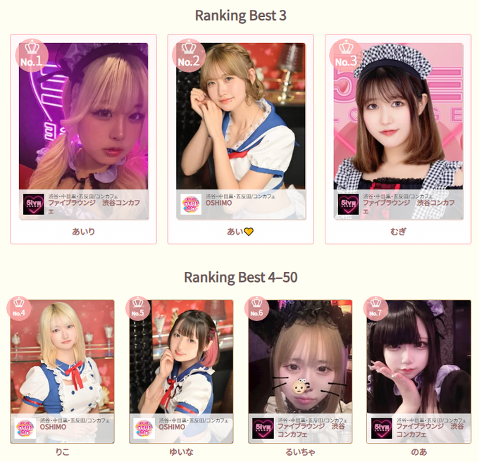 渋谷・中目黒・五反田 ファイブラウンジ 渋谷コンカフェあいり@airi5ive·6時間にゃんか居た、引用【公式】カフェるん:コンカフェ求人サイト@caferun_job·1月27日🌟#カフェるん #キャストランキング発表! 🌟 📍 渋谷・中目黒・五反田エリア BEST50 あなたの推しはランクインしてる?新しいお気に入りを探してみてね💖 📅 2025年1月20日~1月26日の集計結果 🎉🎊🎉 1位🏆あいり @airi5ive 2位🏆あい https://shop.caferun.jp/shop/11294/cast/119175… 3位🏆むぎ @mugi_5ive 4位🎗️りこさらに表示132110