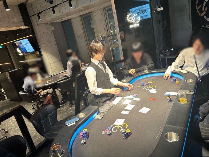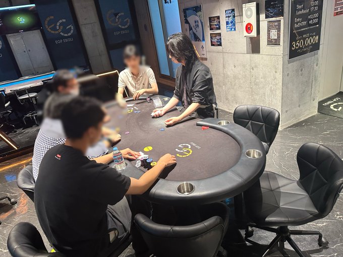 POKER BAR『EGP EBISU』@EGP_EBISU·⚜️EGP EBISU店内状況⚜️ 【BIG5キャンペーン!】 🔱EGP Daily Tournament 🔱 只今、Level 4 8名様で進行中です✨✨ レイトレジストは20:30です🔥🔥 👇🏻トーナメント詳細👇🏻 http://pokerguild.jp/tourneys/323850 【リングゲーム】 2-5-5進行中です!! 皆様のご来店お待ちしております❣️ #EGPOKER2339