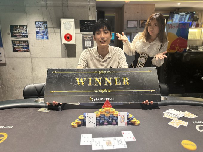 POKER BAR『EGP EBISU』@EGP_EBISU·⚜️ EGP Daily Tournament ⚜️ 🏆 093 様 🥈 Shingo2 様 🥉 匿名 様 皆様インプライズおめでとうございます🔥🔥 またのご参加お待ちしております❤️🔥❤️🔥✨✨✨ #EGPOKER12419