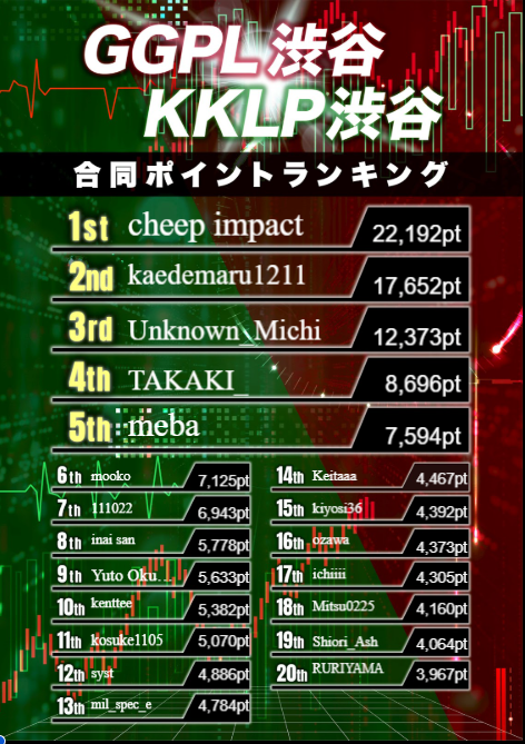 渋谷・中目黒・五反田 KKLIVE POKER SHIBUYAKKLIVE POKER SHIBUYA@KKLIVESHIBUYA·5時間【POINT RANKING】 GGPL渋谷と合同でリングゲームポイントランキングを開催中です✨ ダンピングやオールインシュートアウトを始めとした技術を伴わないアクションで増加したチップは集計の対象外になる場合がございます。 集計は営業日ごとの純増で集計しており 「預かりチップー総購入チップ数」さらに表示引用KKLIVE POKER SHIBUYA@KKLIVESHIBUYA·5時間Feb.19.Thu 本日も、KKSBオープンです! ▼14:00- 【KK Genesis 5K】 http://pokerguild.jp/tournament?ik=6618… レイトレジストは17:40まで🔥 ▼13:00-リングゲーム 2-5(5) 15時までに¥5,000以上購入すると$200プレゼント! ご来店お待ちしてます✨ #KKSB #渋谷 #ポーカー525