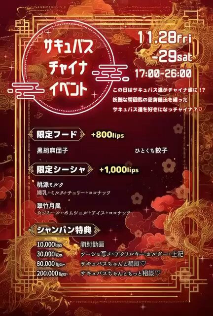 渋谷・中目黒・五反田 サキュバスシーシャ KISS 赤坂サキュバスシーシャKISS💋赤坂店@succubus_akasak·赤坂サキュバスシーシャ💋 OPENしました✨ 💟17:00-26:00 💟ご新規様🈹アリ◎ チャイナイベント🐼 11/28(金)のサキュバス😈💗 17:00~ しぃ@cii__sk もあ@moa_SKaksk 18:00~ わんちーま@puruiwanko ユエ@yue_akasakiss 18:30~ みり@miri__sk 19:00〜 たまき@tama__sk 20:30〜 めあり@meachi_sk0:06123277