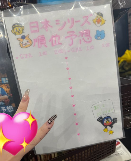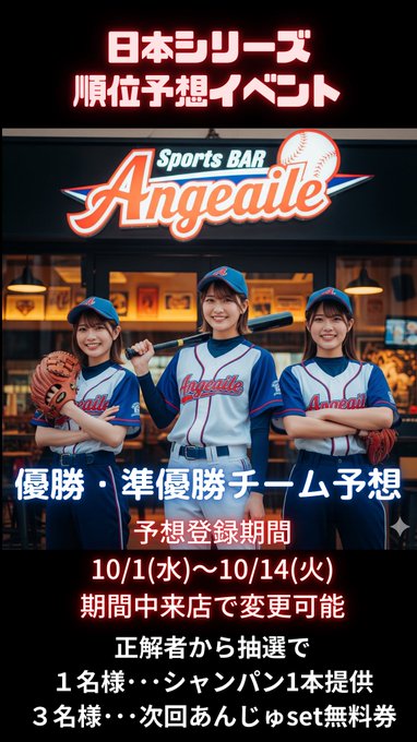 あんじゅえーる🎌昼から呑めるスポーツカフェ&バー⚽️🏉⚾️西武新宿から徒歩1分さんがリポストねね@あんじゅえーる@nene_angeale·43分あしたからだよー!!!準備完了(`・ω・´)ゞ 3位のチームまでのキャラ描こうと思ったけど集中力きれた🫠引用あんじゅえーる🎌昼から呑めるスポーツカフェ&バー⚽️🏉⚾️西武新宿から徒歩1分@Angeale_sports·9月23日#日本シリーズ の季節がやってくる⚾🔥 優勝&準優勝をピタリと当てよう💕︎ 🌟10/1(水)〜10/14(火)🌟 期間中なら何度でも予想変更OKなので、お店に来るたびに楽しめます😉︎💕︎ 正解者には、抽選で豪華プレゼント🎁 推しチームへの愛を語りに、ぜひ #あんじゅえーる に遊びに来てくださいね!128255