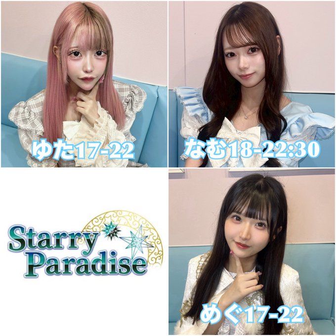 Starry Paradise@StarryParadise_·⋆ ✩ ⋆ ┄ ⋆ ✩ ⋆ ┄ ⋆ ✩ ⋆ ┄ ⋆ ✩ ⋆ ┄ ⋆ ✩ ⋆ 9/30 出勤メンバー🩵 めぐ@meguchihanemui 17-22 ゆた@llx12_ 17-22 なむ@namu_chan7 18-22:30 遠隔はこちら👇🏻💎 http://stapara.official.ec #新宿 #歌舞伎町 #コンカフェ ⋆ ✩ ⋆ ┄ ⋆ ✩ ⋆ ┄ ⋆ ✩ ⋆ ┄ ⋆ ✩ ⋆ ┄ ⋆ ✩ ⋆1100