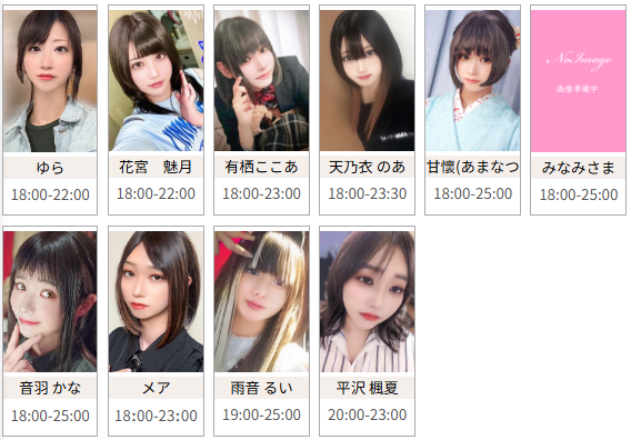 アイドルカフェ&バー♡乙女ハウス@otomehouse·9月26日(金) 🎀🏠 営業時間19時- れな -23 あゆむ 19-23 ねむり 19-24 りこ 21-L しほ 2230-L たから 23-L ご帰宅お待ちしてますʚ🎀ɞ6191