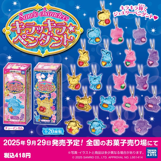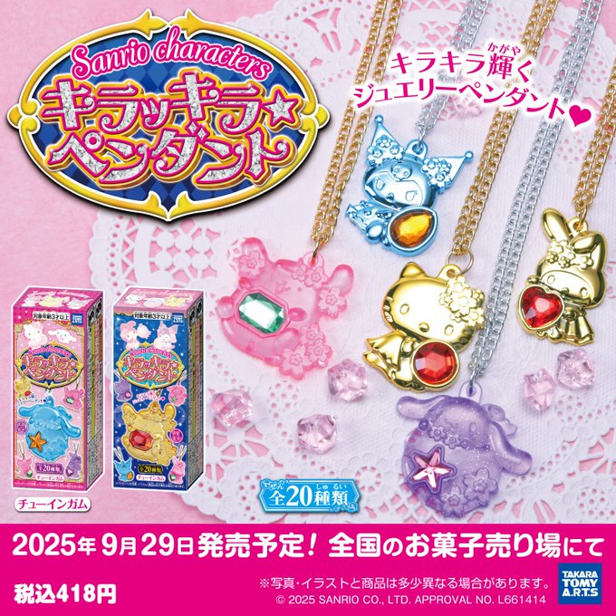 あむ🈂️ん🐼🪼@amusan00·22時間あたいは女児だからこういうの大好き見つけたら教えてください引用正方形のプロフィール画像サンリオ@sanrio_news·9月26日タカラトミーアーツから「サンリオキャラクターズ キラッキラ★ペンダント」が登場! ジュエリーペンダント1個(全20種・ランダム)とチューインガム1粒が入っているよ♪ キラキラ輝くペンダントがとってもかわいい♡ 9/29(月)~全国のお菓子売り場などでGETしてね☆ https://sanrio.lnky.jp/LActarf16570