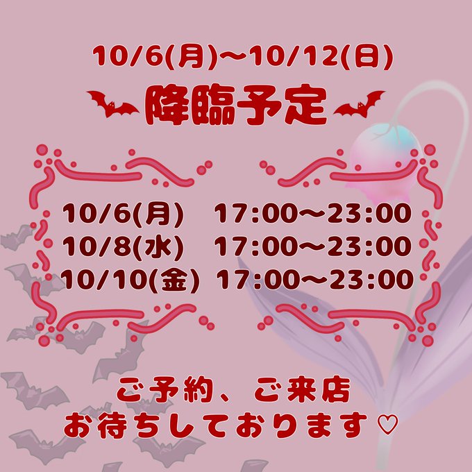 アヴィ@元祖サキュバスシーシャ@_Aviran_·明日からの降臨予定🫶 6(月)の17時〜19時、 サキュバスちゃんが私1人の予定なので、応援してくれる優しいお客様お待ちしてます🥺 @sweettripss6