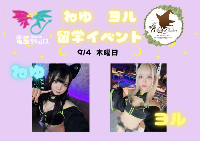 むう🐱🐾サキュバスシーシャABYSS歌舞伎町 9/19,20.🎂さんがリポスト電脳サキュバス⚡️サイバーシーシャ歌舞伎町@Succubus_Cyber·◥◣ 🧙♀️留学イベントのお知らせ⚡️ ◢◤ ⚠️ゲリライベント発生⚠️ 日時:9/4(木) 17:00-23:00 魔女の箱庭(@witchesgarden31 )から2人の魔女ちゃんが 電脳サキュバスへ留学に来てくれます🪄 ぜひご来店ください✨19184,749