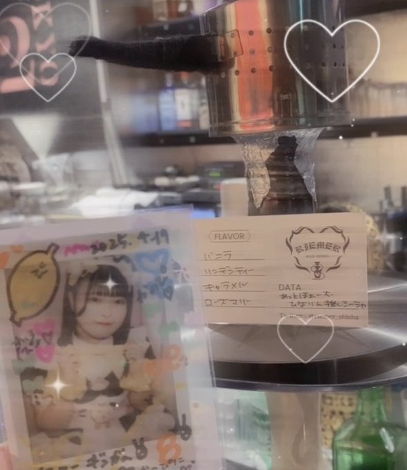 かのん₍ᐢ.ˬ.ᐢ₎ ❄️@kanon_mellow0x0·かえのちゃんとあっとにもご帰宅したけど、ぴよりんイメージの推しシーシャも作って貰って吸ってきたよ🐤💭 チェキはスマホ裏に持ってるやつ。 バニラ×リンデンティー×キャラメル×ローズマリー🌹🫖 @kaeno_riemer @maid_piyorin117314