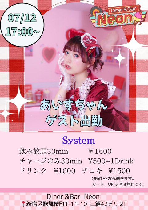 田中あかり👶🏻@22369Ooo·7月12日あいすさん初めて会えたうれしい🥲🥲🥲🥲引用🍒Diner & Bar Neon🍒歌舞伎町コンカフェ@cafeNeon1·7月12日7/12(土)Neonオープンしてます✨ 🎀本日のゲスト🎀 あいすちゃん@shampoo_331 🧸出勤キャスト 🍒あかり@22369Ooo 🍒ばき @roast__beef18 🍒いちご @ichigo_4nyn 🍒捺夏 @natsuka_neon 本日あいすちゃんゲストイベント❤️🍨 詳しくは画像をご覧下さい👀さらに表示3352