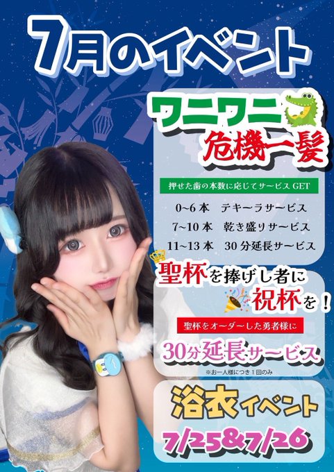 まいかてんᐡ𖦹 ̫ 𖦹ᐡ@kazunokonosushi·7月後半のお給仕予定です 時間早めたり別日出られたりするので連絡ください₍ ᐢ. ̫ .ᐢ ₎ 予約DM、ご来店お待ちしてます(ᴗ ̫ ᴗ ♪3100