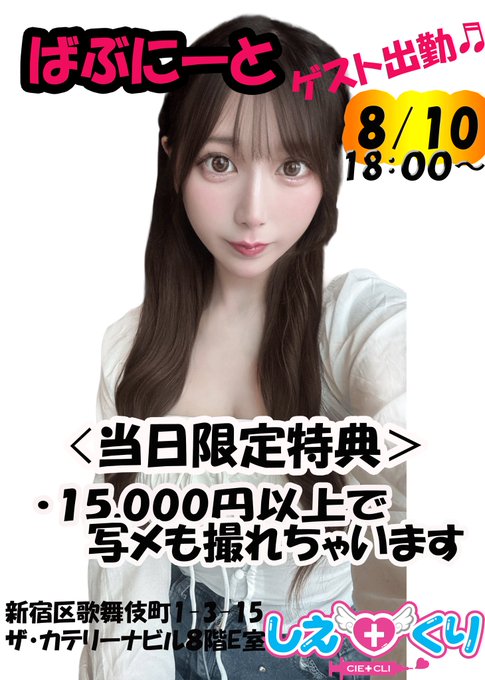 しえ♡くり❤️🔥某有名女優プロデュースのお店❤️🔥 【コンカフェ歌舞伎町】@cieloclinic_kab·˙˚ʚ ゲスト出勤告知👼🏻🤍 ɞ˚˙ 8/10 ばぶにーと様ゲスト出勤🥂🌟 @putisiant12 ❤︎当日限定❕ 15.000以上で写メが撮れます( •̀ ̫ -︎︎ ) ੭💕 #しえくり #歌舞伎町 #コンカフェ12152