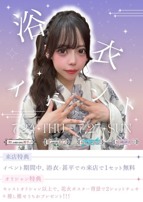 推し推せっ!KABUKI@oshiose_tokyo·7月25日(金)⏰営業時間18:00〜LAST🫶🏼 🎀推し推せ歌舞伎店🎀 @oshiose_tokyo 👘浴衣イベント👘 18:00 すず @suzu_oshiose とおる @toru_oshiose ひめる @himeru_oshiose えりか @erika_oshiose ひな @hina_oshiose まゆさらに表示313482