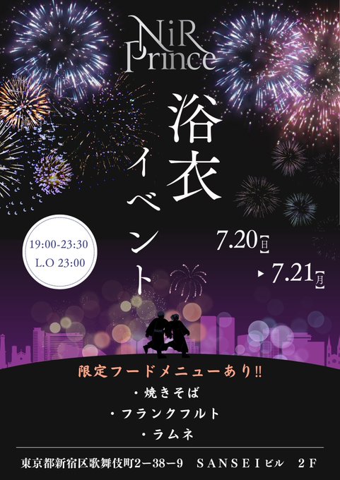 NiR Prince@NiR_Prince_·NiR PrinceOPENしました✨ 本日は浴衣イベントです👘 出勤キャストは… 23:30 👑うに ⚔️いるみ 👑真夜 ⚔️かえで 19:30~ 👑せあ ⚔️はゆ ~23:00 👑はると ⚔️るか 皆様のご来店お待ちしております✨2678