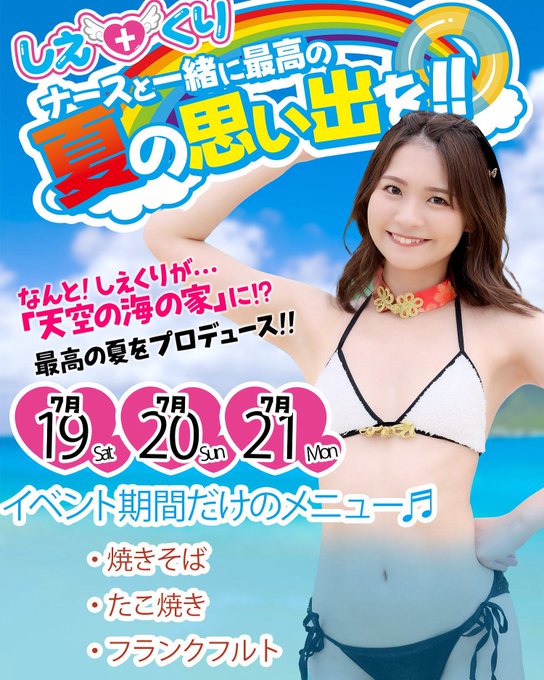 たりら-Bits-@新宿🐰シャンコがあるバニーコンカフェ@Tarira_Bits·7月20日7/21(月) たりらびメンバー🐇🍉 🌊🏝️海の日ですね🏝️🌊 18時〜23時まで⏰ ✨入店1年㊗️オリシャン販売中✨ 🐣えりたま @aeri_desu 🎀優香にょふ @yuka_nyohu_ 遠隔で乾杯🍻 http://tarirabits.net/?page_id=275 TikTok📱 http://tiktok.com/@tarirabits引用たりら-Bits-@新宿🐰シャンコがあるバニーコンカフェ@Tarira_Bits·7月2日🗓️最新シフト https://calendar.google.com/calendar/embed?src=tarirabits%40gmail.com&ctz=Asia%2FTokyo… ❤️姫うさ募集中❤️ http://tarirabits.net/?page_id=231 💌tarirabits@gmail.com 👑たりらび3周年記念👑 姫うさLINEスタンプ販売‼️ https://line.me/S/sticker/30992080/?lang=ja&utm_source=gnsh_stickerDetail… 7/19(土)20(日) 👘浴衣夏祭りイベ 26(土) 🌸百桜えりか様ゲスト出勤 🍾えりたま 入店1年㊗️オリシャン販売中✨13355