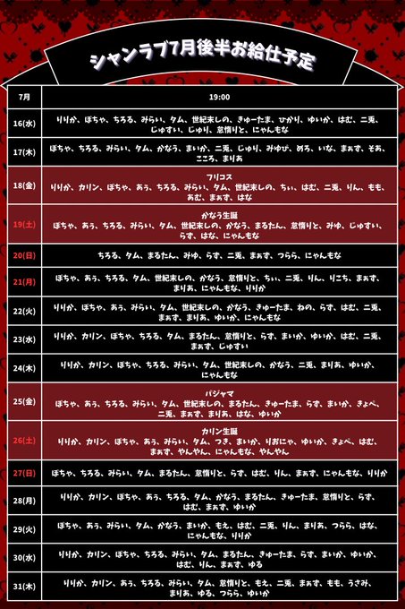 固定NiR Prince@NiR_Prince_·NiR Prince 7月後半シフト最新版です✨ 20日、21日は浴衣イベント🎐 22日〜25日はGrand Open1ヶ月記念として新規のお客様は無料キャンペーン㊗️🎊 皆様のご来店お待ちしております🎵2,204