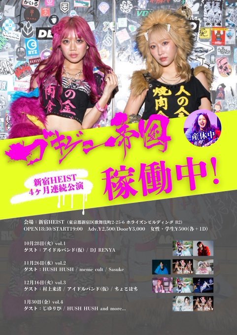 新宿・歌舞伎町 IDOLilith~アイドリリス~IDOLilith〜アイドリリス〜@IDOLilith·11/25(火)悪魔ちゃん💜 😈みるきぃ@_miyuki0726_ 😈めろ@mello_IDOLilith 😈えま@_em_chi 是非お越しください💜 遠隔はこちら⇒ http://idolilith.base.shop111217