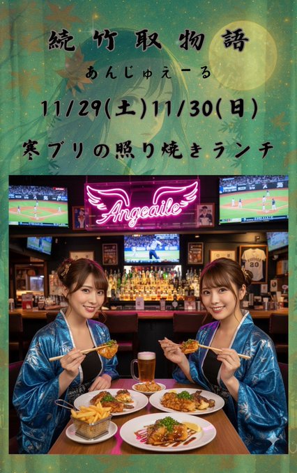 新宿・歌舞伎町 スポーツ観戦バーあんじゅえーる8周年あんじゅえーる🎌昼から呑めるスポーツカフェ&バー⚽️🏉⚾️西武新宿から徒歩1分@Angeale_sports·【👑今週末の豪華ランチ👑】 🍴︎11月29日(土)&30日(日)🍴 🎉周年特別イベント🎉 🎋竹取物語💫 「🍚🐟寒ブリの照り焼きランチ🍽✨」 観戦パックご注文の方は+500円でご提供✨ ご来店お待ちしてます!4182