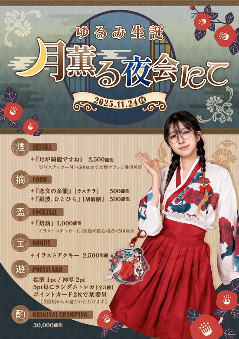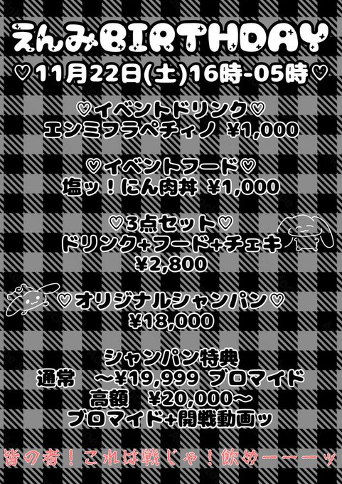 新宿・歌舞伎町 メイド&サブカルカフェバーぷるきゅーメイド&サブカル カフェバー ぷるきゅー@purukyu·【お知らせ】 いよいよ今週末に開催🎶 11/22(土)えんみちゃんBDイベントの詳細です🎉 営業時間は16:00-5:00🌛 当日限定メニュー🍸🍴やオリシャン🍾、特典🎁などご用意しています✨ 皆様のご来店、お待ちしています💕43369