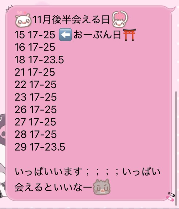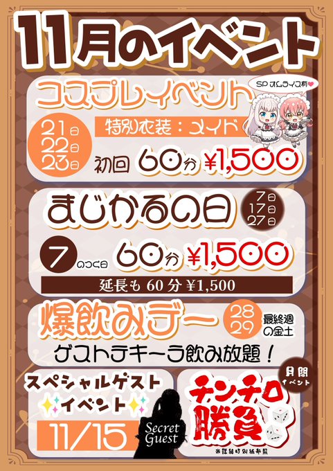 新宿・歌舞伎町 Cafe &barまじかるらんくあっぷ固定ねむちゃん@Magical_nemu0·11月後半のお給仕予定💭 コスプレイベント2日間います🐾 爆飲みデーもあるので来てください、そしてねむとチンチロ勝負をしましょう💪🏻 連絡待ってます💌2252