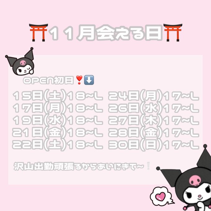新宿・歌舞伎町 Raymelan固定Raymelan ~レイメラン~@_Raymelan_·🌙 11月後半シフト☀️ 11月後半も沢山のご来店お待ちしてます♡ 遠隔サイト⤵︎ ⤵︎ 【🔗 http://raymelan.official.ec 】 📍歌舞伎町1-13-7 コマビルB1F ⏱18:00~23:00(Lo.22:30)634,517