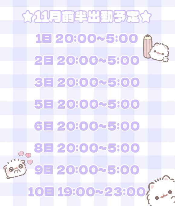 新宿・歌舞伎町 1st♡love固定きら💫@KIRA_qph·今のところ11月前半これです( ̳- ·̫ - ̳ˆ )◞❤︎158