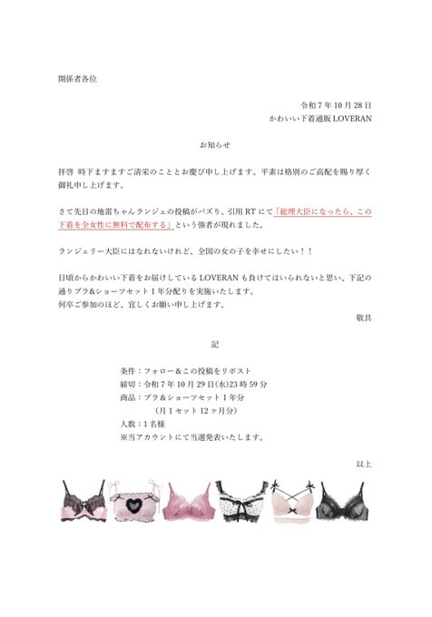 新宿・歌舞伎町 がさいれはちみつ🫧さんがリポスト𝐿𝑂𝑉𝐸𝑅𝐴𝑁_𝑂𝐹𝐹𝐼𝐶𝐼𝐴𝐿@LoveranOfficial·ブラセット1年分あげます👙4231.4万2万124万