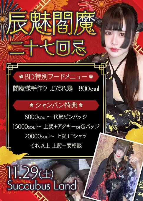 新宿・歌舞伎町 Sweet Tripねむみこ♥サキュバスランド@nemumico_·降臨 閻魔さんバースデーだよーーー㊗️いっぱいのむよん(ᐢᴖ ·̫ ᴖᐢ)🎶 @succubus_land218475