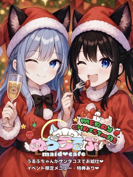 新宿・歌舞伎町 めろうるふ♡めろうるふ🎀新宿歌舞伎町コンカフェ🩶@merowolf_maid·🎄クリスマスイベント🎄 12/24♡12/25 うるふちゃんたちがサンタコスでお出迎え♡ クリスマス限定オリシャン、限定特典あり🎁1120