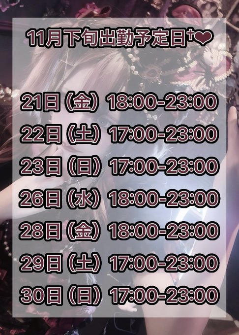 IDOLilith〜アイドリリス〜@IDOLilith·47分11/29(土)悪魔ちゃん💜 😈紫白@446_ID0Lilith ╶ ╶ ╶ ╶ ╶╶ ╶ ╶ ♡♡♡♡╶ ╶ ╶ ╶ ╶ ╶ ╶ ╶ ­­ 😈みるきぃ 😈めろ 😈えま 😈ごまちゃま 😈つかさ 本日紫白ちゃんのラスト出勤です! 皆さんで見送りましょ🪽 是非お越しください💜 遠隔はこちら⇒ http://idolilith.base.shop引用IDOLilith〜アイドリリス〜@IDOLilith·11月12日【 お知らせ 】 紫白(@446_ID0Lilith )がアイドリリスを 卒業する事になりました🙇‍♂️ ラスト出勤日➸11/29(土) 時間➸19:00~01:00 初期からアイドリリスを盛り上げてくれた 紫白ちゃんを最後に皆様で送り出しましょう🪽6113