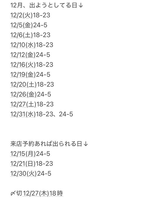 かのん₍ᐢ.ˬ.ᐢ₎ ❄️さんがリポストかのん₍ᐢ.ˬ.ᐢ₎ ❄️@kanon_mellow0x0·11月29日クリスマスシーズン、昼職でいないので、12月中に来てくれてひと足早いクリスマスっぽいことしてくれる人、募集😺 持ち込み無料なのでケンタ食べたり、お絵描きチェキもクリスマス仕様の撮りたい🎄引用かのん₍ᐢ.ˬ.ᐢ₎ ❄️@kanon_mellow0x0·11月27日こんな感じで出すので、この日行けるよーって連絡あるとたすかります! 削られちゃうかもなので。 x.com/kanon_mellow0x…26527