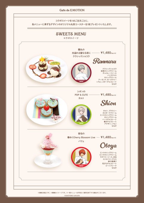 新宿・歌舞伎町 がさいれれれれのれ@rere_re_ta·2時間えーん行きたい行く絶対見てろよ引用スイーツパラダイスコラボ【公式】@SP_collabo·7時間/ うたの☆プリンスさまっ♪ LIVE EMOTION コラボカフェ 「Cafe de Emotion」Season 2 \ ✨コラボメニュー解禁✨ Season 2のアイドルのエモーショナルピースをイメージしたコラボメニューや、アイドルのイメージカラーのドリンクが登場します!さらに表示150