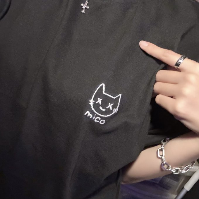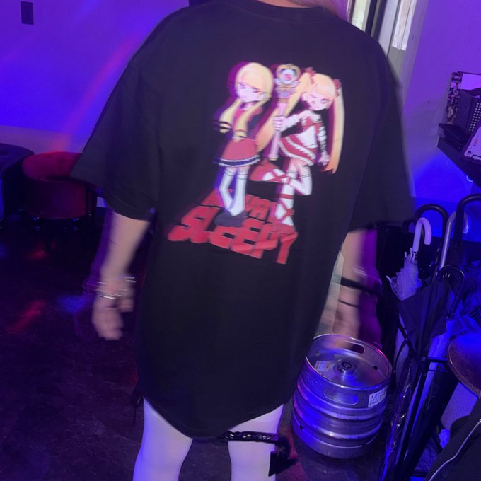 新宿・歌舞伎町 Sweet Tripねむみこ♥サキュバスランド@nemumico_·Tシャツ届いた!!着やすい!でかい!かわいい!!!表面は刺繍です😺💘7158