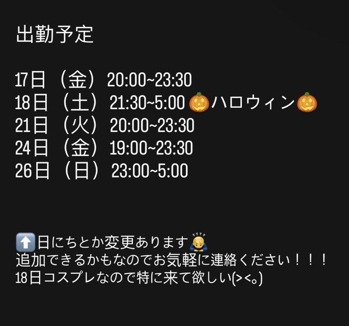 新宿・歌舞伎町 1st♡love固定りず🐈⬛🥀@rizu_myaa·10月後半予定です🦋.*˚ 昨日間違えて前半予定出してた× ̫ ×21146