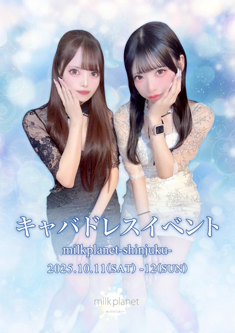 新宿・歌舞伎町 めいどカフェ&バーmilkplanet【みるぷら】milkplanet【コンカフェ】@milkplanet_cafe·ミルプラオープンしてます❕ 本日もキャバドレスイベントです✨ ももあ、あまち、はいる、ねむ、しゅな、きい、みなつ、いる、いな、さな、もも ご来店お待ちしております✦.*41,359