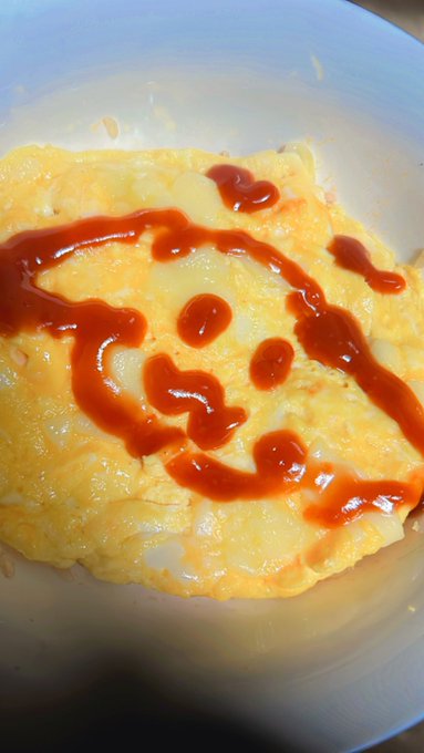 新宿・歌舞伎町 がさいれ獄潰し@gokutubusi___·おはようございます どうせ寝るのに近くのコンビニ行く為だけにメイクしてオムライス作った ケチャップゆるすぎる&絵が下手で変な犬出来た 寝て起きたら二度寝しないでお風呂入る目標229