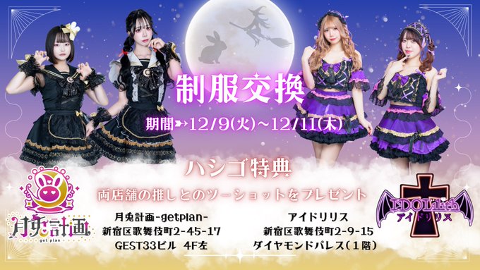 新宿・歌舞伎町 IDOLilith~アイドリリス~めろ👶🏻@mello_IDOLilith·3時間❤︎ 月兎計画さん❤︎と制服交換🐰🌙 1日目いますദ്ദിᐢ- ̫-ᐢ₎引用IDOLilith〜アイドリリス〜@IDOLilith·4時間12/9(火)悪魔ちゃん💜 本日は制服交換1日目🐰🌙 😈みるきぃ@_miyuki0726_ 😈めろ@mello_IDOLilith 😈えま@_em_chi 😈はに@h0ney__821 是非お越しください💜 遠隔はこちら⇒ http://idolilith.base.shop3204