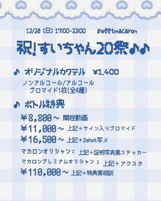 上野・御徒町・湯島・浅草 メイドカフェsweet macaronこんさんがリポストすい@suichan_maid·初めての生誕❕詳細です❕⬇️ みんなでわいわいお祝いしたいなーと思ってます!!⊂( ᴖ ̫ᴖ)⊃ ⊂(ᴖ ̫ᴖ )⊃🎶🩵🎂 特典も可愛いの考えてるからぜひ貰って欲しいな > ·̫