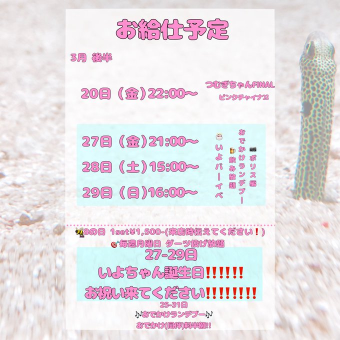 新橋・銀座 全宇宙魔法使い ぱぴぷぺポロン固定ひよこ@asupia_hiyoko·🚀3月後半乗船&召喚予定🛸 🚀16 ㈪ 🚀17㈫ 🚀19㈭ 🚀21㈯ 胸キュン♡ 🚀22㈰ あすピア★学園 🏫 🚀23㈪ 🚀24㈫ 🚀26㈭ 🚀27㈮ 🚀28㈯ あすピアクリニック 🚀29㈰ 🏥💊🩺💉 🚀30㈪ 🚀31㈫ 全部あすピアにOPENからいます! 会いに来てくれるマスターは ご連絡お願いします!!5363